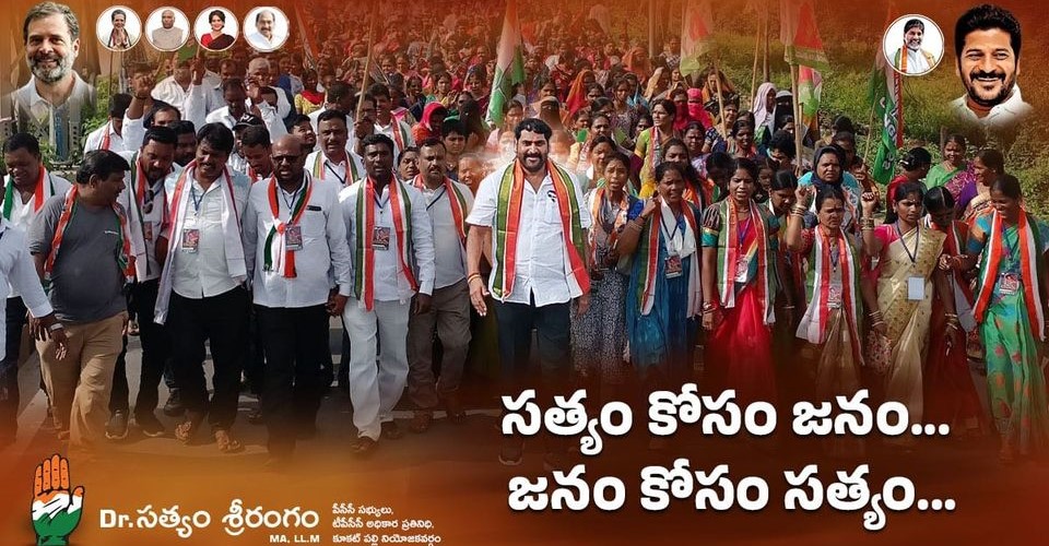 Dr. Satyam Srirangam is a dedicated politician and social worker, known for his commitment to public welfare and active leadership within the Telangana Pradesh Congress Committee (TPCC). With a strong grassroots presence, he has played key roles in major Congress campaigns and community initiatives across the state.